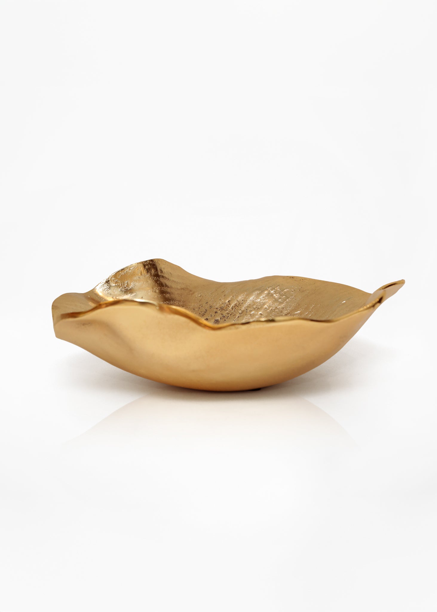 Frutero o centro de mesa decorativo de acabado dorado con forma organica