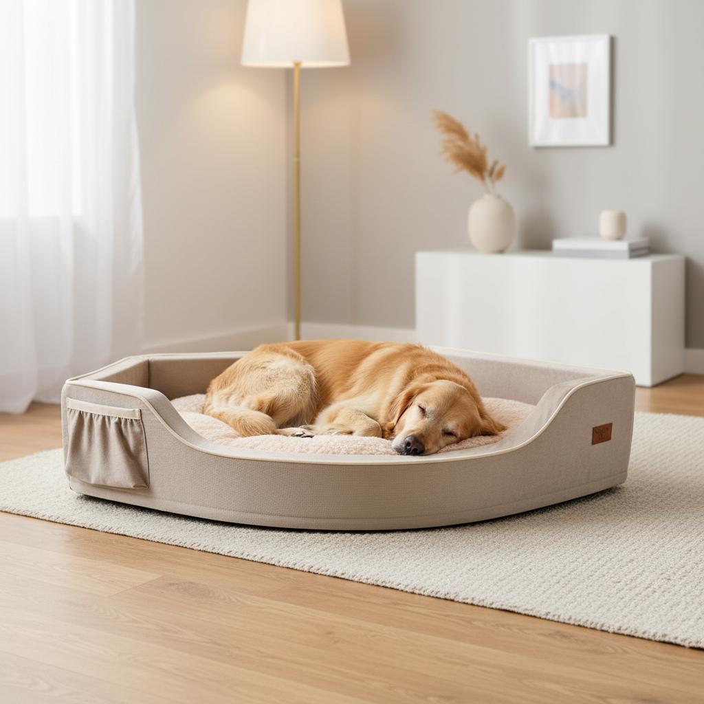 Cama esquinera diseñada específicamente para perros de razas medianas y grandes. Cuenta con acolchado de alta densidad que proporciona soporte ortopédico y comodidad superior para el descanso de tu mascota. Su forma angular aprovecha los espacios de esquina, creando un refugio acogedor donde tu perro se sentirá seguro y protegido. El material acolchado es duradero y fácil de limpiar, ideal para el uso diario. Perfecta para mejorar la calidad del sueño y el bienestar general de tu compañero canino.