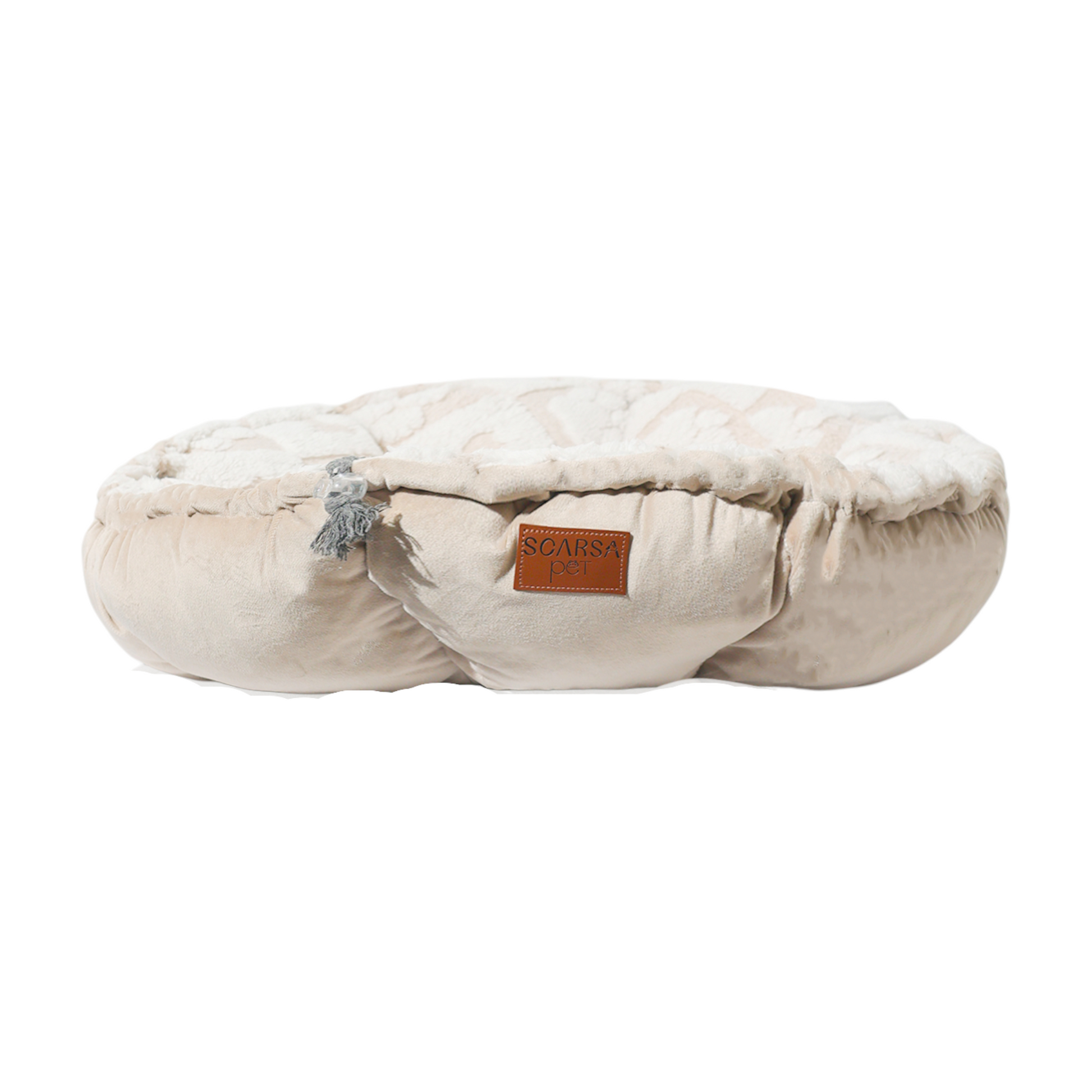 Cama versátil diseñada para adaptarse a las preferencias de tu mascota. Ofrece dos configuraciones prácticas: úsala abierta como tapete cómodo para descanso en cualquier espacio, o ajusta su cordón para transformarla en una acogedora forma de dona que proporciona contención y seguridad. Fabricada con materiales duraderos que resisten el uso diario, esta cama se convierte en la solución perfecta para mascotas que buscan flexibilidad en su espacio de descanso. Fácil de limpiar y mantener, se adapta a diferentes ambientes del hogar.
