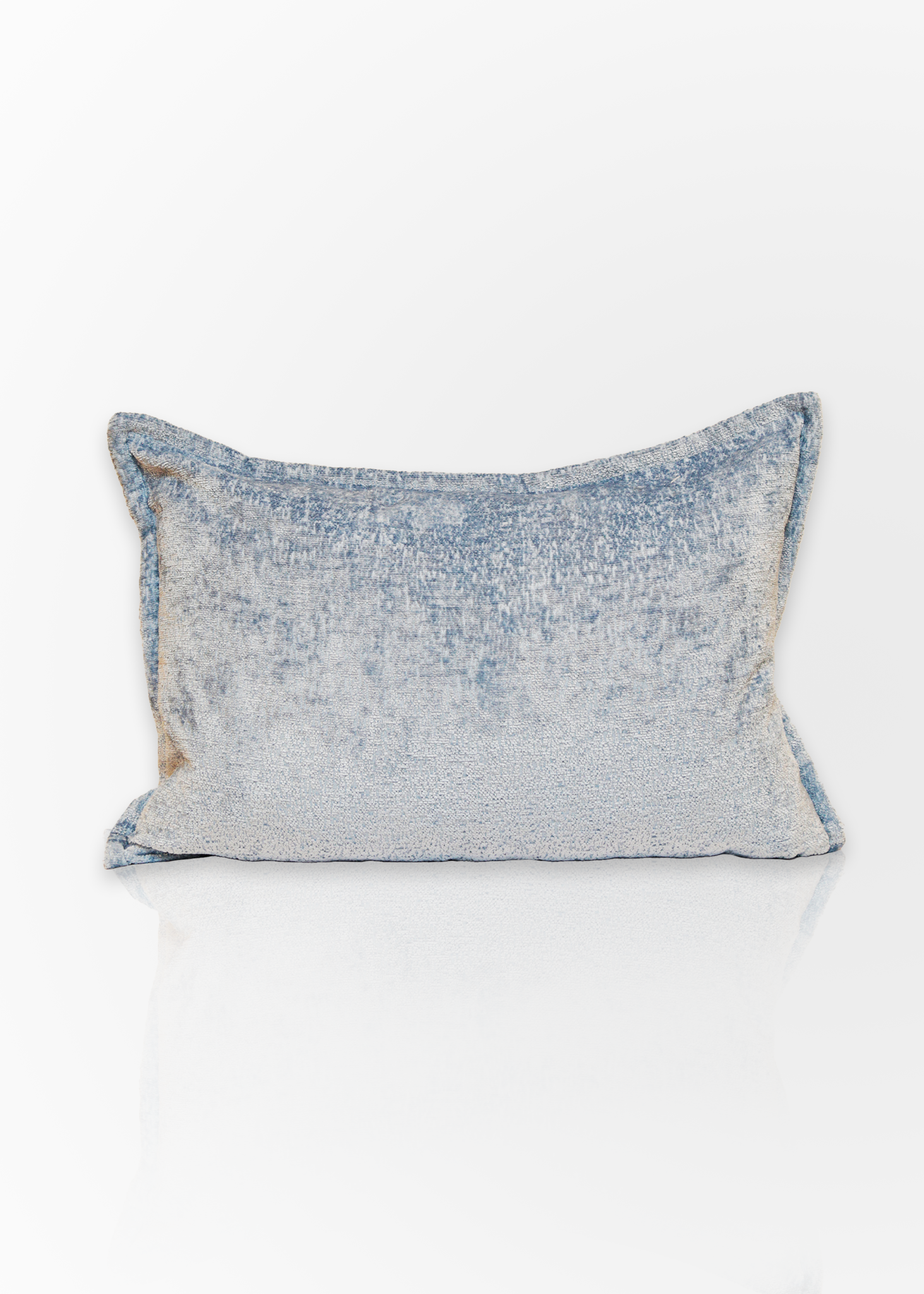 Cojín decorativo rectangular en suave tono azul celeste con acabado aterciopelado. Su textura acogedora y color relajante lo hacen perfecto para crear un ambiente fresco y moderno en cualquier espacio con un toque de confort y estilo.