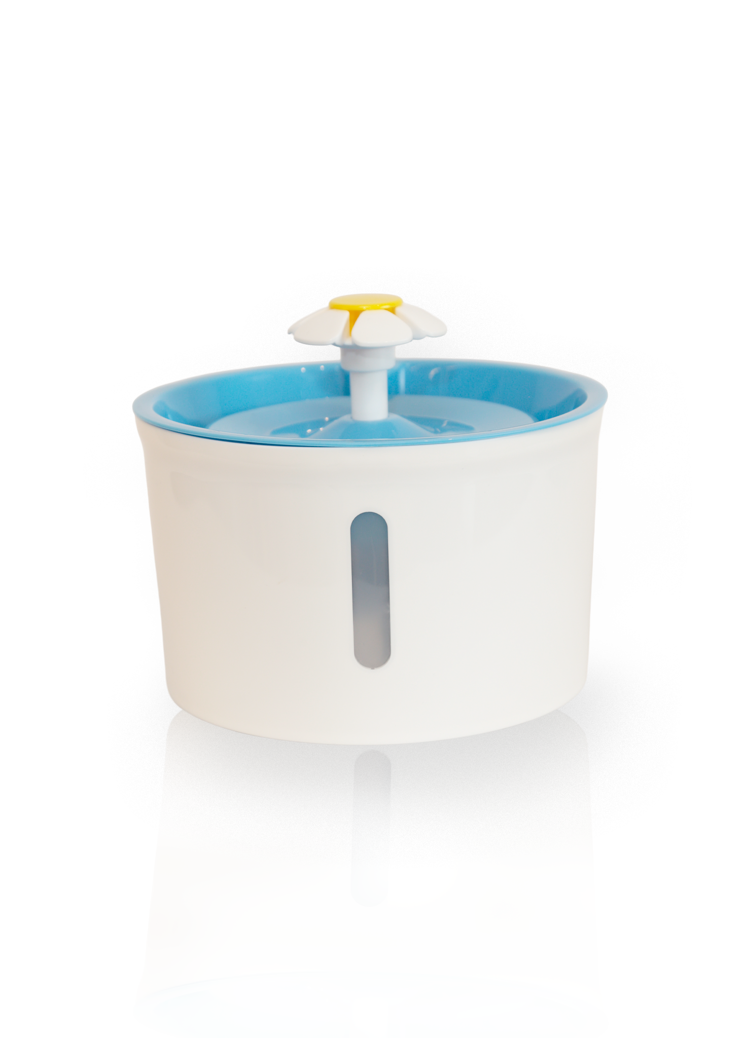 Fuente de agua con flor. Un oasis para tu michi o perrito. Su diseño con flor no solo es adorable, ¡también hace que el agua fluya en forma de cascada! Ideal para mantener a tu peludo feliz, hidratado y curioso.