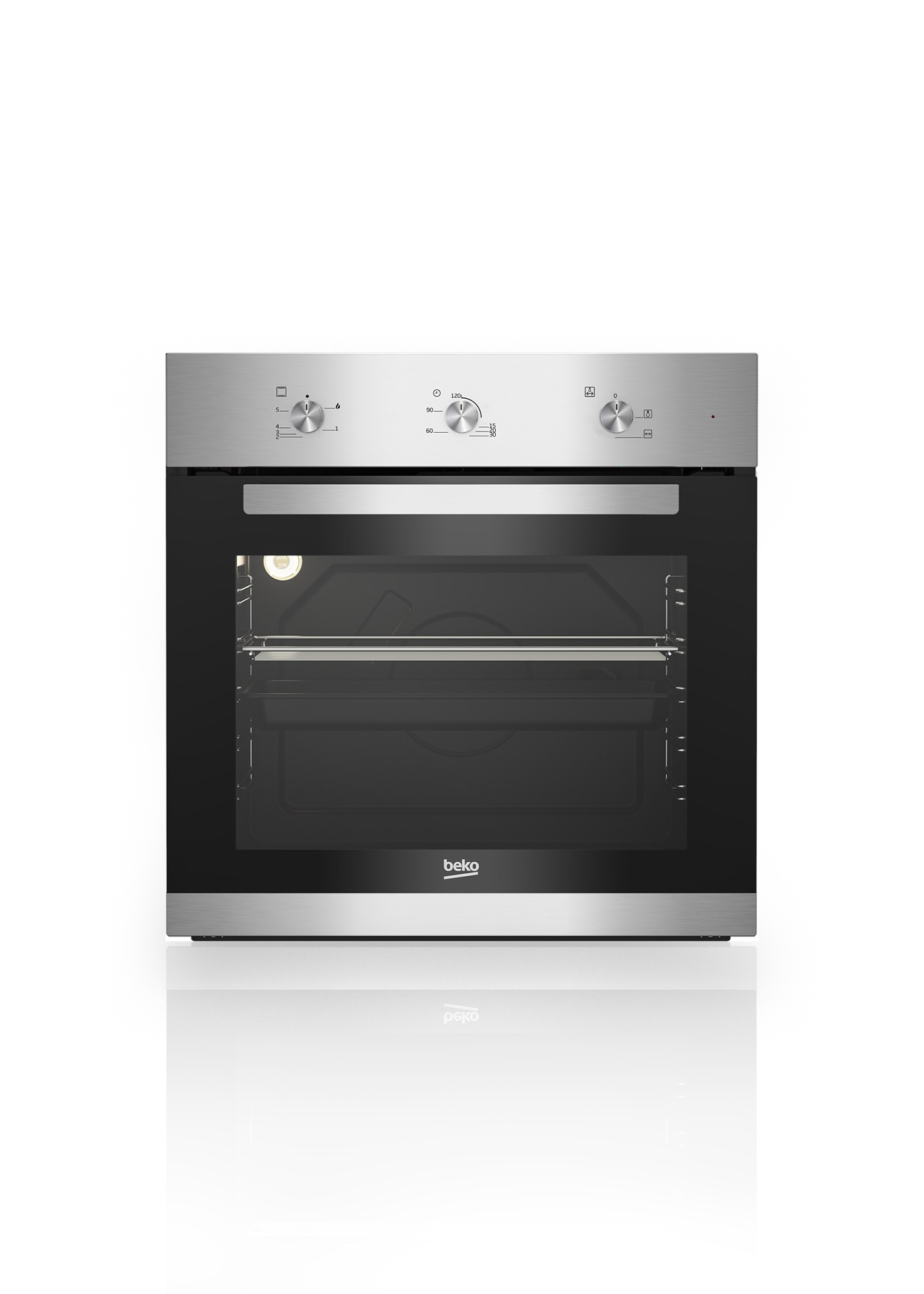 5 niveles de potencia de gas. 2 Funciones: Luz interior. Cocción carne asada. Temporizador con mando. 1 bandeja estándar y 1 parrilla. 2 válvulas en Horno y Grill.