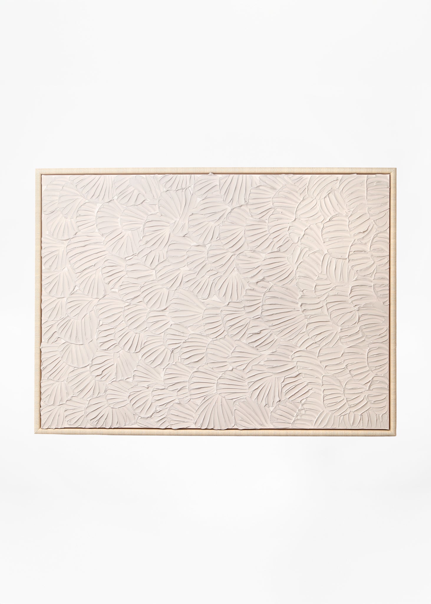 Cuadro abstracto hecho a mano dando la apariencia de conchas marinas, su textura probablemente es yeso o pasta de moldear.
