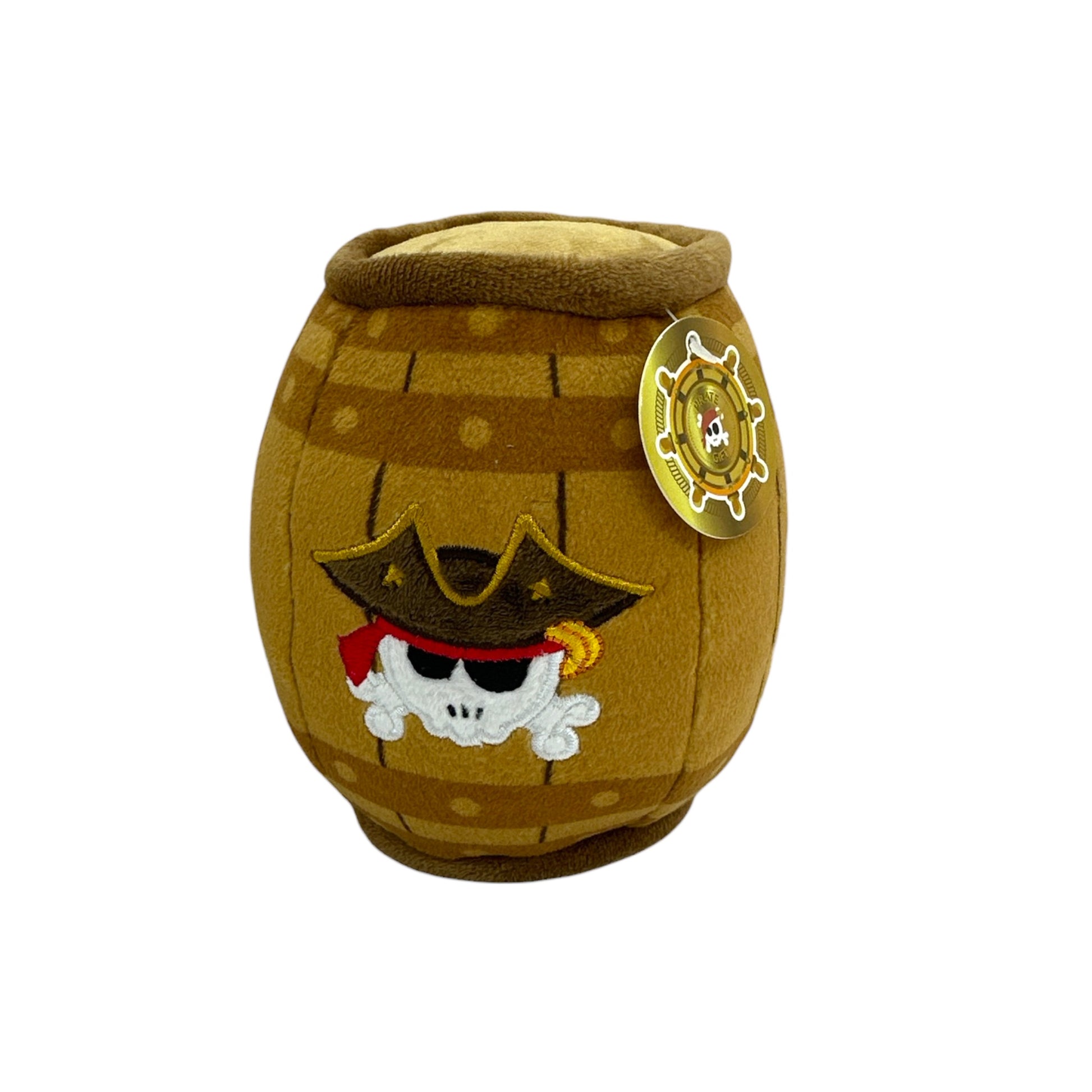 Peluche barril de pirata diseñado especialmente para perros que disfrutan de juegos interactivos. Cuenta con un chirriante integrado que estimula el instinto de juego y mantiene a tu mascota entretenida durante horas. Su forma de barril tradicional pirata ofrece un agarre cómodo para perros de diferentes tamaños. Fabricado con materiales duraderos y seguros, resistente al desgarre y perfecto para sesiones de juego tanto en interiores como al aire libre. Ideal para fortalecer el vínculo entre tú y tu compañero canino mientras proporcionas enriquecimiento mental y físico.