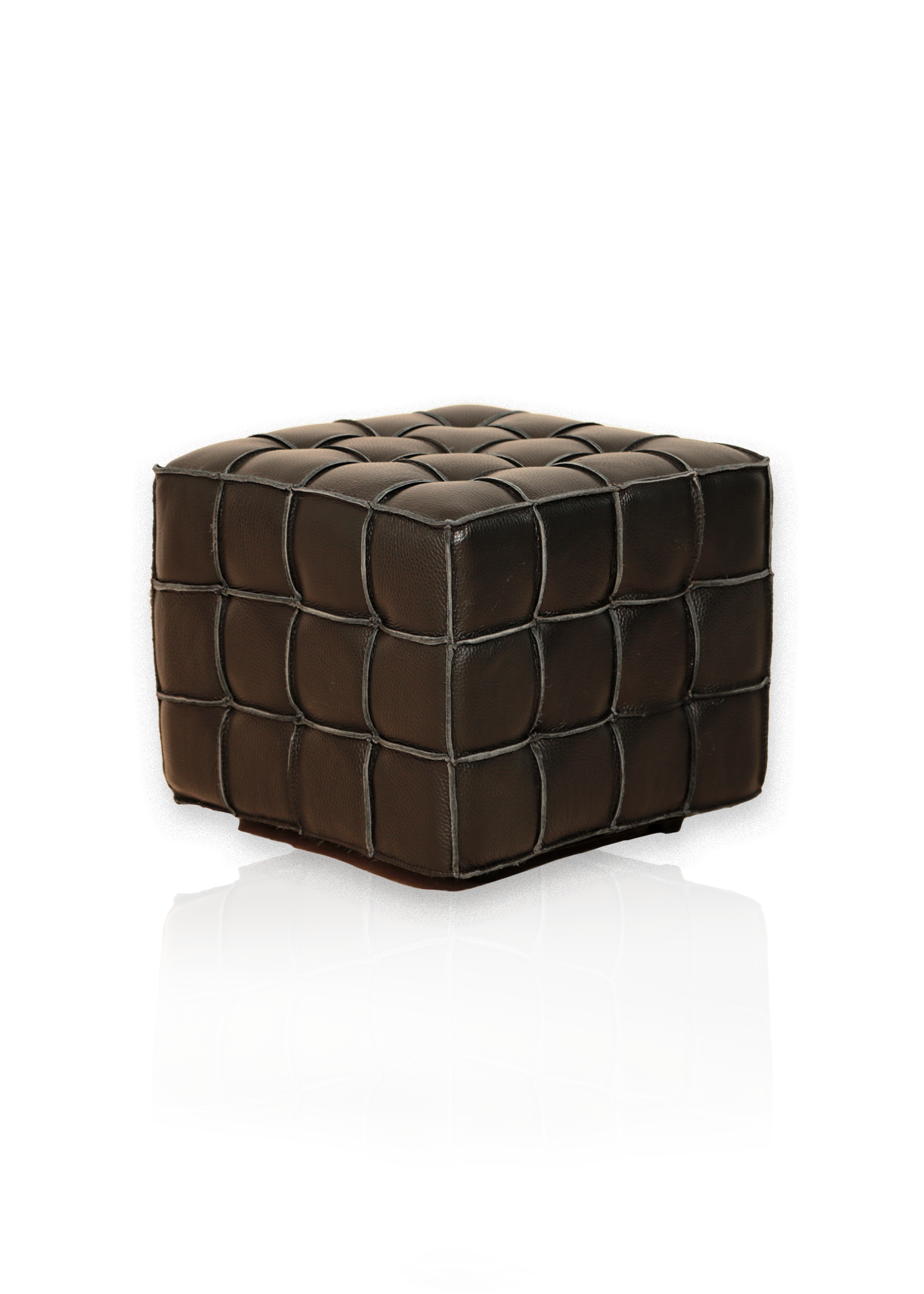 Puff cuadrado tapizado en piel con diseño capitonado. Versátil y moderno, ideal como asiento extra o elemento decorativo en cualquier espacio.